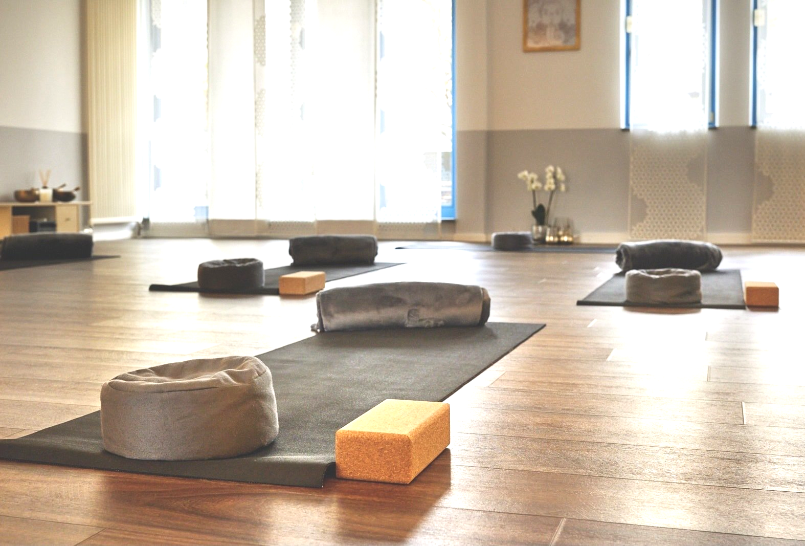 - Yoga - Matten, Meditationskissen, Blöcke, Decken, Polsterrollen, Gurte, Yogawheels, Kopfstandhocker, Augenkissen